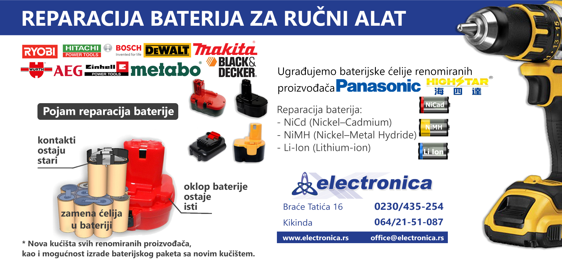 Nova usluga reparacije baterija za ručni alat je dostupna u našem servisu za pravna lica.